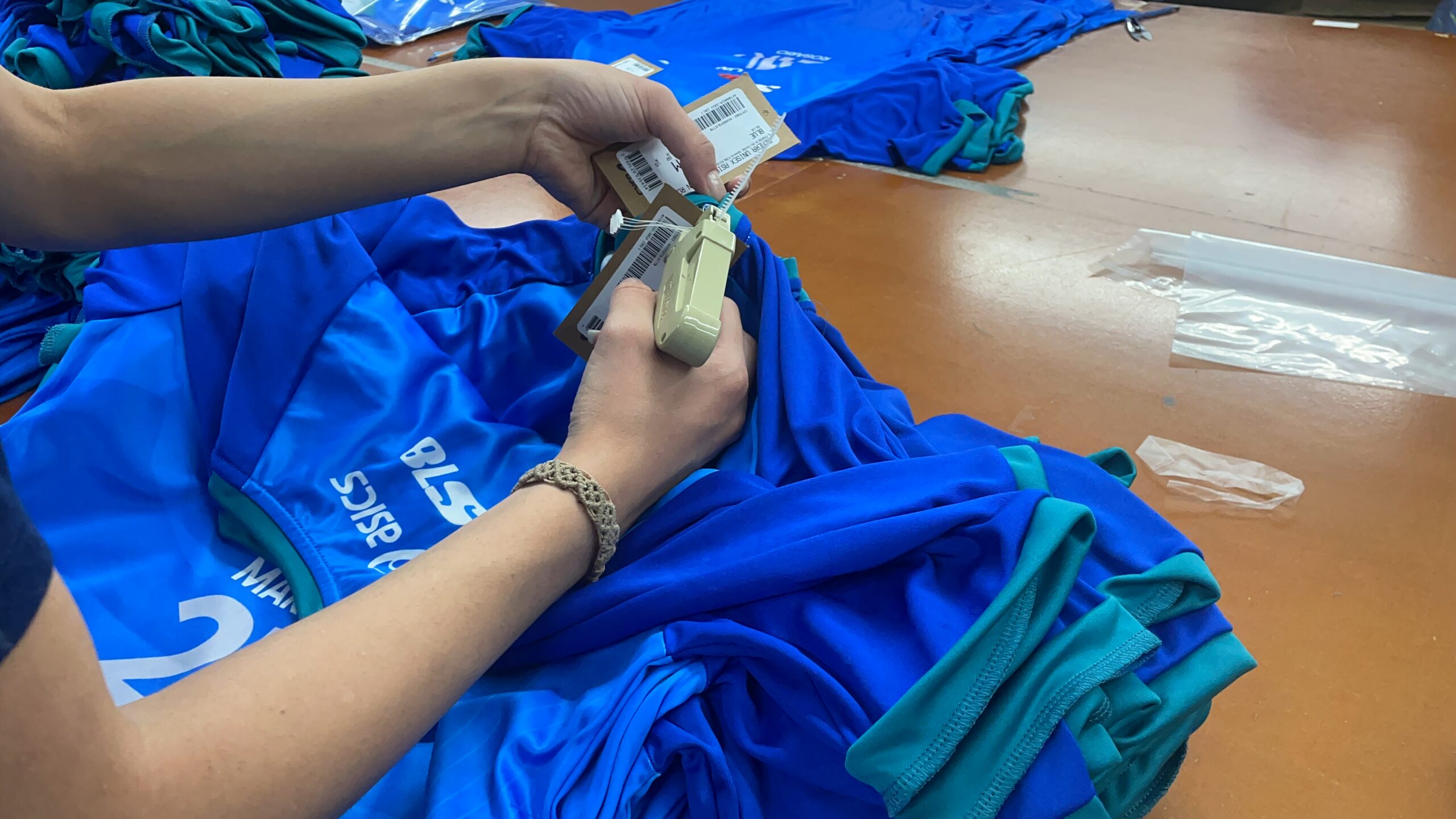 Incorporamos recientemente una plancha vapor, así todas nuestras prendas terminan el proceso planchadas y listas para su uso. Una vez que las prendas han superado el control de calidad, se empaquetan cuidadosamente en envases diseñados para protegerlas durante el transporte y el almacenamiento. Nos aseguramos de que cada artículo llegue a nuestros clientes en perfectas condiciones.